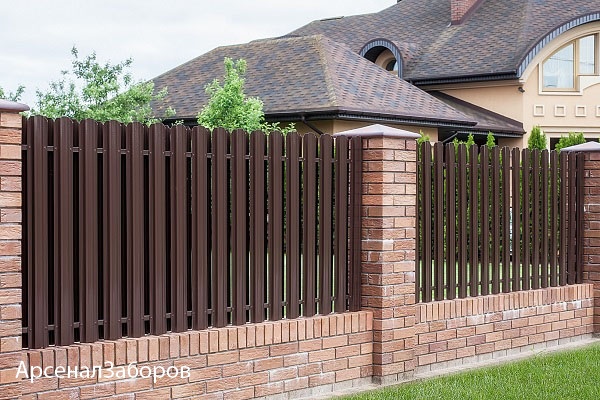 Забор из евроштакетника с кирпичными столбами